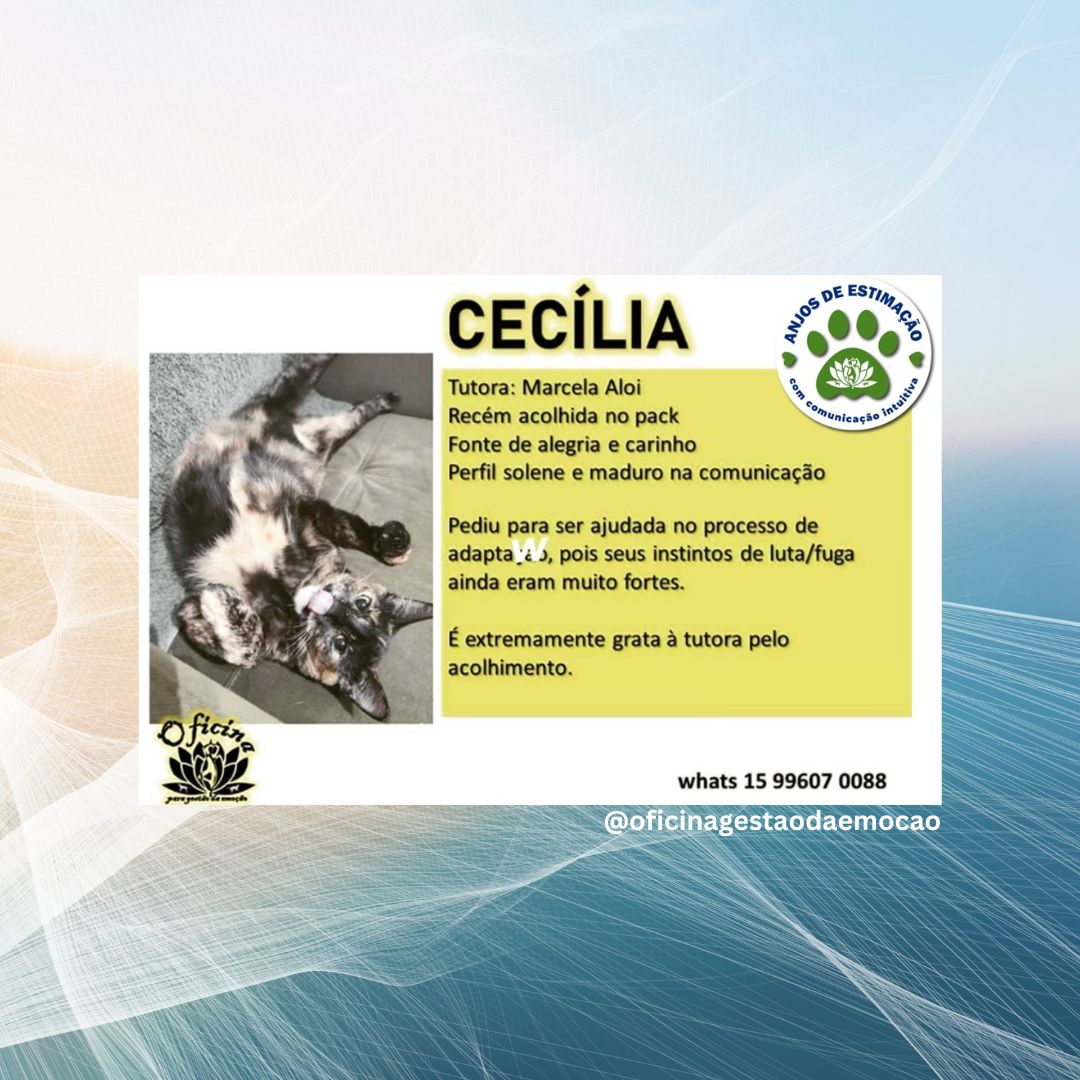 ANJOS DE ESTIMAÇÃO, Cecília. .. Essa fofura de gatinha, estava “causando” no período de adaptação ao novo lar. .. A comunicação intuitiva trouxe à luz